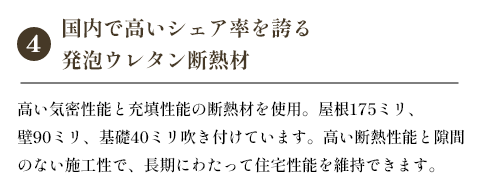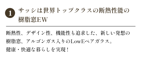 サッシは世界トップクラスの断熱性能の樹脂窓EW、断熱材は高断熱・高気密の省エネ住宅を実現できる『MOCOフォーム』を使用し、快適さと高い断熱性を実現